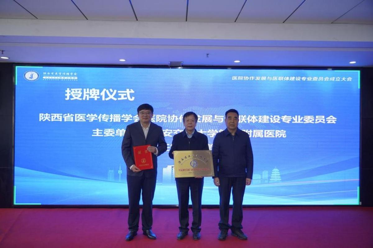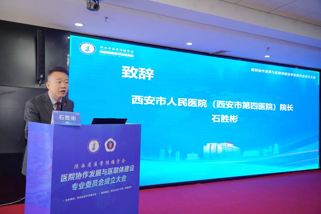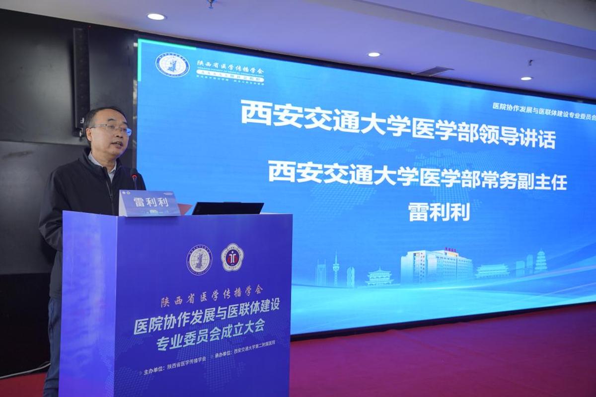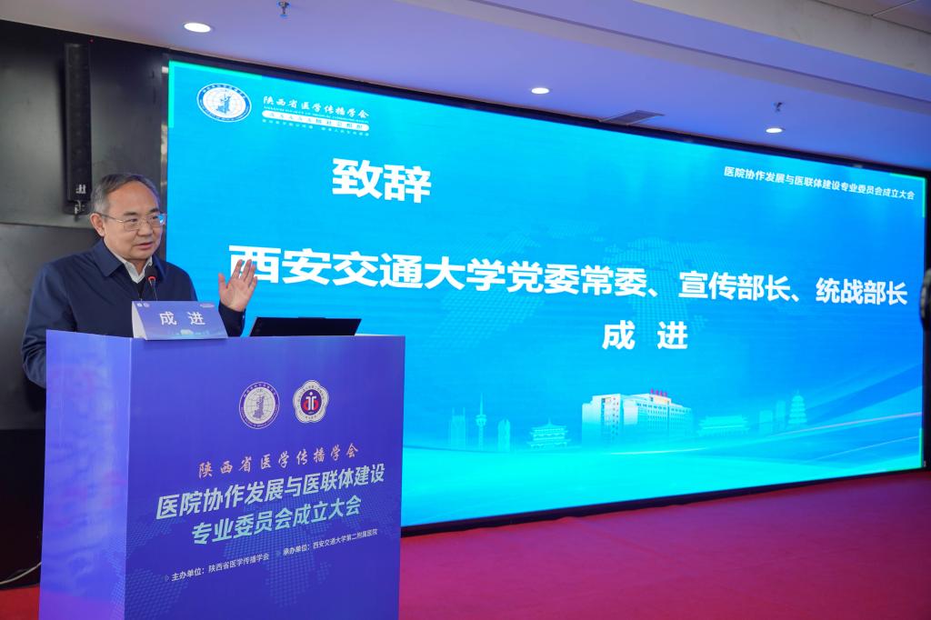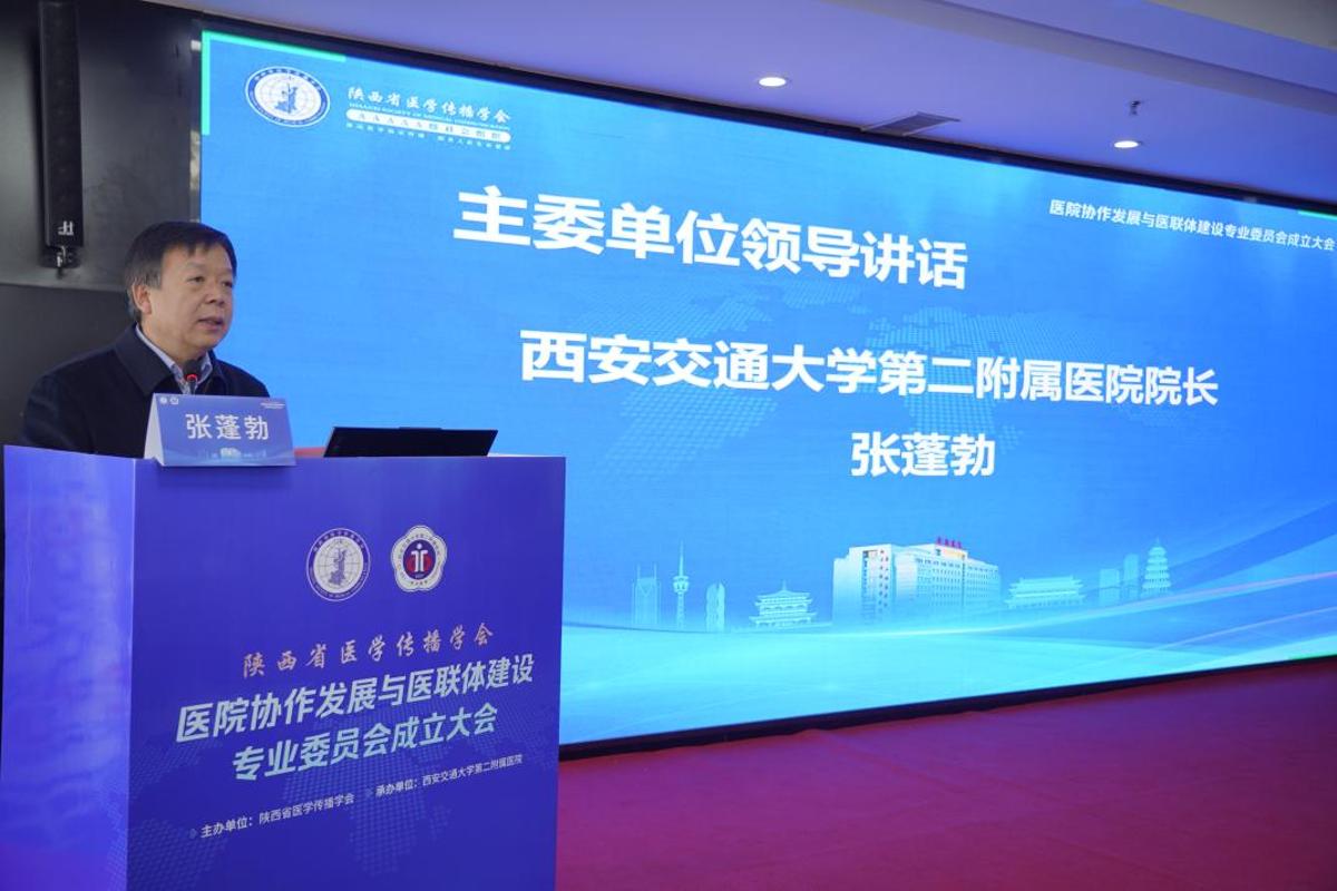 为深入贯彻落实国家关于深化医药卫生体制改革的决策部署,搭建省域各级医疗机构管理经验交流与成果推广平台,培育“懂医疗又懂管理”的复合型人才,开展“医学”与“管理学”融合探索,11月2日,由陕西省医学传播学会主办、西安交大二附院承办的陕西省医学传播学会医院协作发展与医联体建设专业委员会(以下简称“医院协作专委会”)成立大会在西安召开。西安交通大学党委常委、宣传部长、统战部长成进,陕西省医学传播学会会长李宏杰、副会长兼秘书长王维君,西安交通大学管理学院党委书记马晓彬、公管学院院长周忠良、医学部常务副主任雷利利、人文学院党委副书记王劲,一附院副院长韩苏夏,二附院院长张蓬勃、副院长戴一,以及来自全省11个地市、45家医疗机构的相关负责人共百余人参加大会,携手共绘医管融合战略蓝图。大会由由西安交大二附院副院长戴一主持。医院协作专委会选举产生了专委会第一届常务委员、主任委员、副主任委员等,西安交大二附院为主委单位、西安交大二附院副院长戴一当选主任委员。