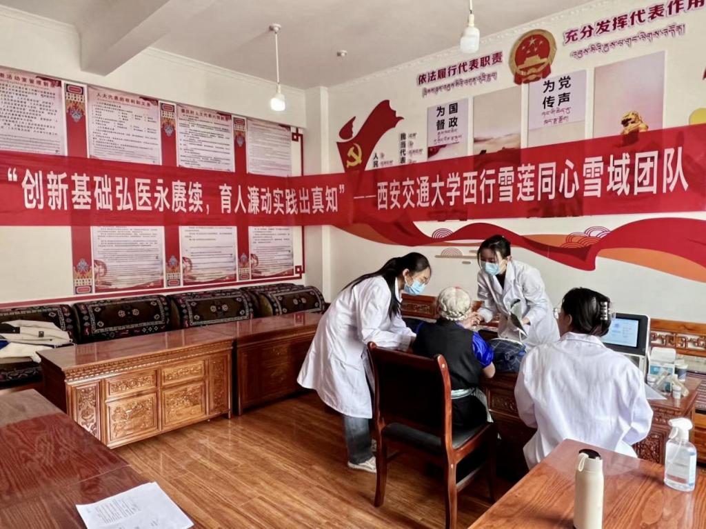 “西行雪莲 同心雪域”团队队员为拉萨德庆村村民进行体检
