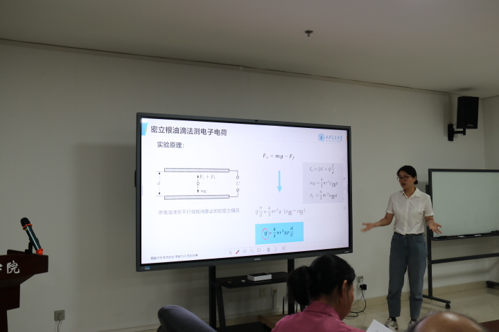 本次比赛邀请学校基础物理课程方面专家为评审专家,并且吸引了30余位青年教师观摩比赛。在随后的比赛中,四位参赛教师以分光计、密里根油滴、转动惯量为主题,从课程思政、教学设计、实验原理、实验操作等多方面展示了物理实验课程的教学过程和教学思考,评审专家从教学设计、教学语态、多媒体展示、课程思政等多方面对青年教师授课进行了全方位的点评和指导。