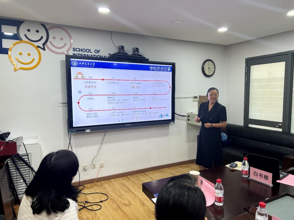 黄校长认真听取了介绍,并高度认同西安交大国际教育学院在留学生教育管理、国情教育等方面创新举措,他表示,希望通过此次交流,学习借鉴西安交通大学国际教育学院的先进经验,共同推动两校留学生教育事业的发展。