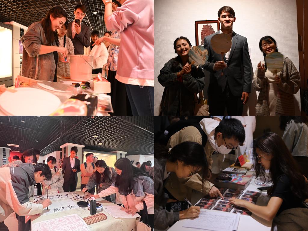 文创作品反转胶片成为展览的一大亮点,线上关注人数近4万人。策展团队巧妙地将各国的照片装进票根之中,以独特精美的形式展现了丝绸之路沿线国家的风情与文化。参展同学表示,这个文创不仅使展览更具趣味性,还让他能够以一种新颖的方式领略各国的魅力,激起了他对世界文化的浓厚兴趣。会场的漆扇体验也吸引了众人的关注,以漆为媒,以扇为纸,共同展现中华优秀传统文化的魅力。