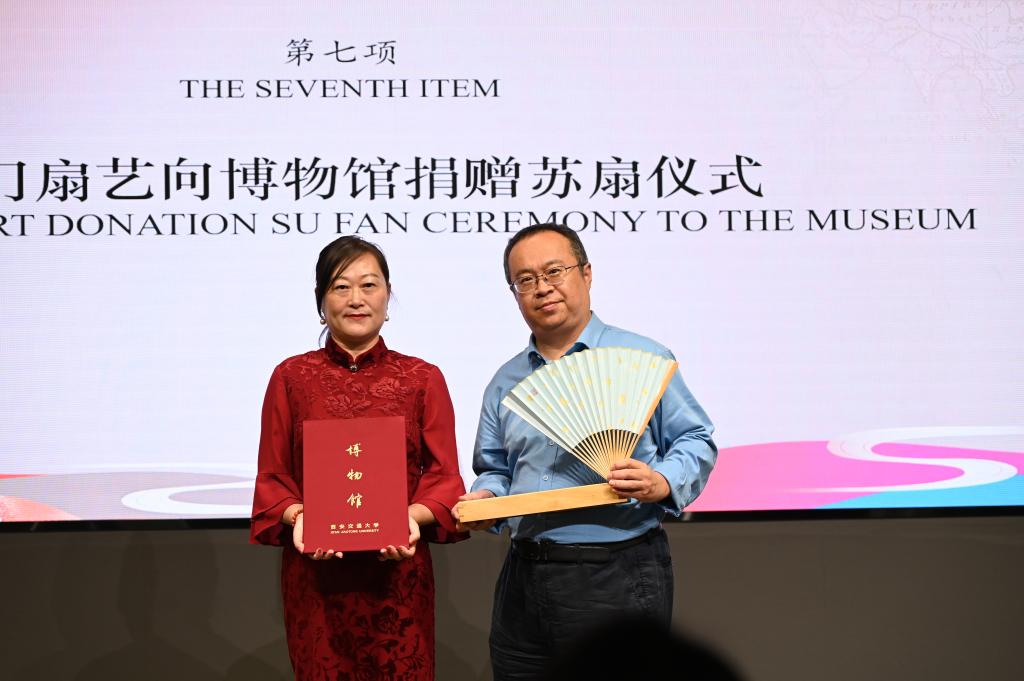 吴门扇艺向交大博物馆慷慨捐扇,此举不仅是对本次展览的大力支持,更是对文化传承责任的积极践行,充分体现了社会各界对博物馆事业的高度重视和鼎力支持。