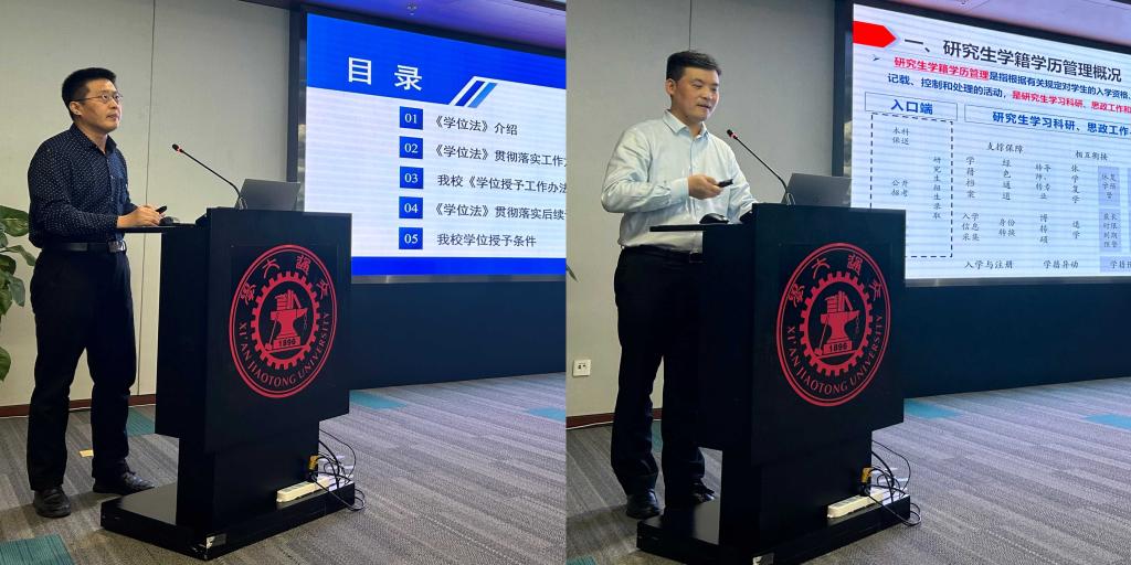 研究生院副院长、研工部部长薛周利汇报了《西安交通大学研究生学籍学历管理规定》(以下简称《规定》)修订情况。他强调,通过修订《规定》将进一步规范研究生学籍学历管理工作,堵塞管理漏洞、健全管理流程,切实提升科学化、规范化和法治化水平。他表示,将继续全力做好《规定》落实工作、信息化系统升级和政策宣传解读,为促进研究生教育高质量发展提供坚实的基础支撑。