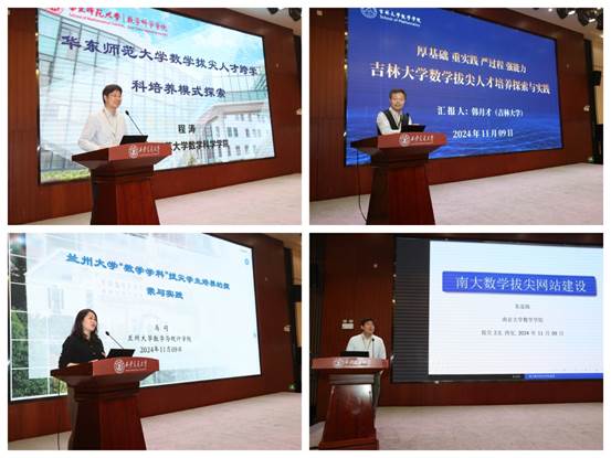程涛介绍了华东师范大学的跨学科培养模式;韩月才分享了吉林大学在数学拔尖人才培养方面的探索与实践;马闪深入探讨了“数学学科”拔尖学生的培养路径;朱富海特别展示了南大数学拔尖网站的建设。