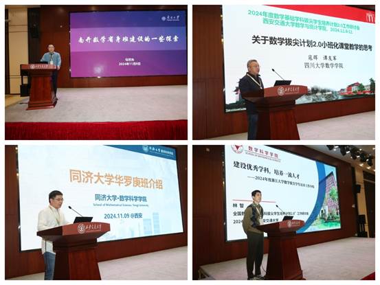 马世光介绍了南开大学数学省身班的建设经验;谭友军分享了四川大学数学拔尖计划2.0中的小班化课堂教学的思考;李忠华介绍了同济大学华罗庚班的特色;林智则总结了2024年度浙江大学数学拔尖学生培养工作。