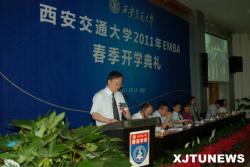 5月19日上午,西安交通大学2011年EMBA春季班开学典礼在517报告厅举行。研究生院陈天宁院长,管理学院党委孙卫副书记、杨建君副书记以及103名来自全国各地的EMBA新学员出席开学典礼。典礼由管理学院谢恩副院长主持。