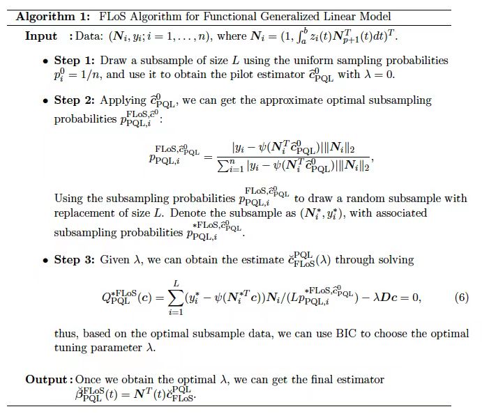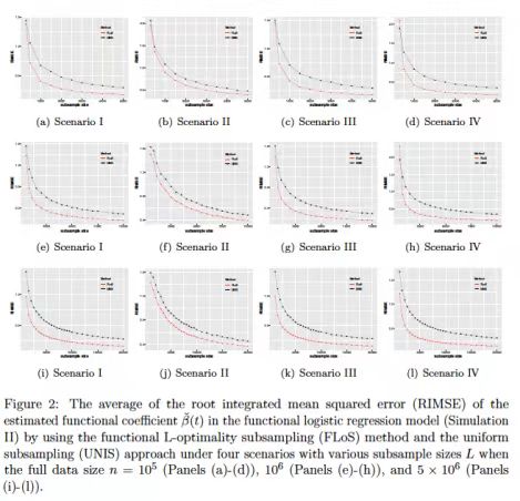 近日,针对上述问题,西安交通大学经济与金融学院青年教师刘华博士、上海财经大学统计与管理学院教授尤进红博士和加拿大西蒙弗雷泽大学(Simon Fraser University)教授Jiguo Cao博士进行了深入的研究。他们首次把子抽样思想应用到函数型数据分析,开发出适应于函数型广义回归模型的最优抽样方法Functional L-Optimality Subsampling(FLoS),以此来实现减少计算时间、克服内存不足等问题的目标。除此之外,作者还通过理论和一系列的数值模拟来说明了该抽样方法的准确性和有效性。
