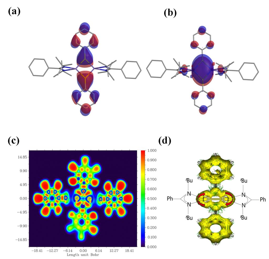 (c) 电子定域化函数(ELF) (d) 感应电流密度各向异性分布(ACID)
