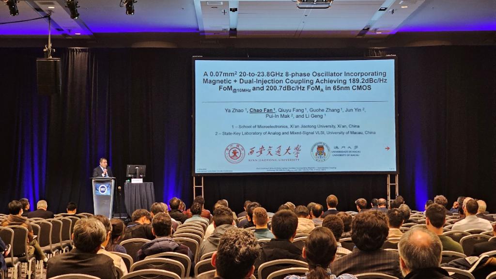 美国当地时间2月18日至22日,2024年国际固态电路会议(ISSCC 2024)在美国旧金山举行,200多篇来自学术界和产业界的最前沿芯片研究成果在这集成电路设计的全球最顶级学术会议发布。此次,西安交大微电子学院耿莉教授团队助理教授樊超在会议发表研究论文“A 0.07mm220-to-23.8GHz 8-phase Oscillator Incorporating Magnetic + Dual-Injection Coupling Achieving 189.2dBc/Hz FoM@10MHzand 200.7dBc/Hz FoMAin 65nm CMOS”。文章的第一作者是来自西安交通大学微电子学院的博士生赵亚。本项目由微电子学院团队与澳门大学微电子研究院联合研究,研究成果获得业界高度认可。近年来,耿莉教授团队深耕芯片设计领域,在电源管理、无线射频、高速通讯方向取得多项突破性进展,研究成果在ISSCC、CICC、JSSC、TCAS-I/II、TPE等国际顶尖期刊会议发表。