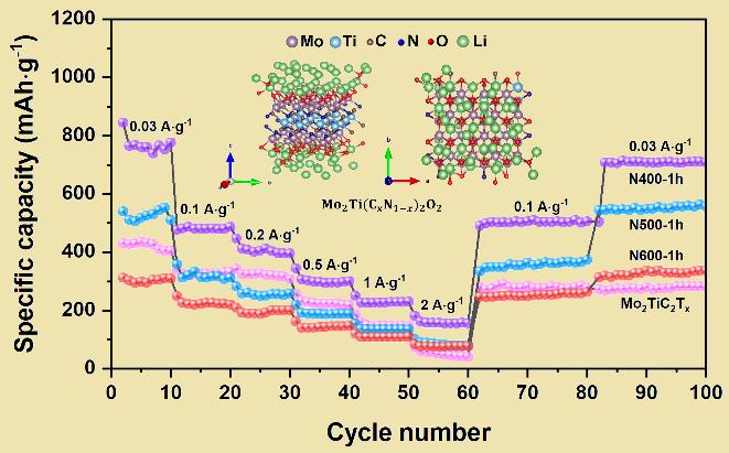 近日,该研究成果以《氨化Mo2TiC2TxMXenes作为锂离子电池负极实现高电导率、储能容量和循环稳定性》(Achieving High Electrical Conductivity, Energy Storage Capacity and Cycling Stability in Ammoniated Mo2TiC2TxMXenes as Anode for Lithium-ion Battery)为题发表于能源类领域国际顶级期刊《材料化学期刊A》(Journal of Materials Chemistry A,影响因子10.7,TOP期刊,JCR分区Q1)。