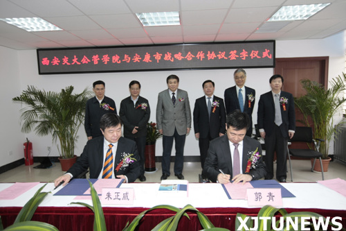 在公共政策社会实验室揭牌仪式结束以后,公管学院还举行了与安康市政府共建社会实验基地的签字仪式。公管学院执行院长兼党委书记朱正威、安康市委书记方玮峰、西安交通大学校党委常务副书记王小力都发表了讲话。王小力在讲话中说,西安交通大学公管学院与安康市政府共建社会实验基地是一件具有重要意义的创新性举措,该实验基地必将促进公管学院和安康市的共同发展。
