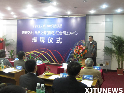 11月26日下午,由西安交通大学与自然之源(青岛)环保科技有限公司联合筹建的研发中心在西安交通大学举行揭牌仪式。揭牌仪式由西安交通大学人居学院教授,联合研发中心主任王沣浩主持,中国轻工业联合会会长、中国家用电器协会理事长霍杜芳女士,人居学院院长孙九林院士,中国家用电器研究院院长邴旭卫教授,四川省招商局局长郑莉,全国家用电器标准化技术委员会马德军秘书长、科技部科技发展战略研究院高志前处长,青岛市高新区经发局局长耿凯,自然之源环保科技有限公司董事长谢小新,以及西安交大实验室与资产管理处、科研院、人居学院相关负责人等出席揭牌仪式。宋晓平副校长为揭牌仪式发来贺词。