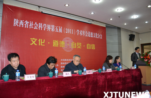12月10日,陕西省社会科学界第五届(2011)学术年会道德文化分会西安交大召开。会议以“文化•道德•自觉•自信”为主题,旨在我国深化文化体制改革、推进中国文化大发展大繁荣的时代背景下,加强陕西省道德与道德文化建设,增加道德文化的自信与自觉,把道德文化研究推向新的高度,为陕西省的文化繁荣发展贡献力量。