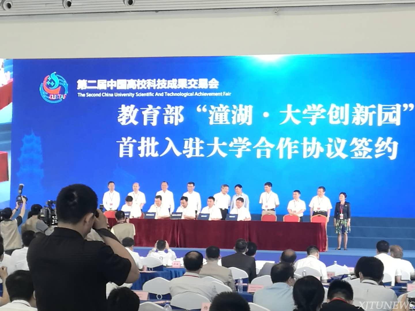在本届交易会上,有293所高校与626家企业牵手,交易科技成果732项,签约金额40.6亿,超过首届科交会。高校与地方政府、科研院所借此平台达成多项合作。西安交通大学王铁军副校长代表学校与惠州市人民政府正式签约入驻“潼湖高校科技成果转化实验区”大学创新园,另外,天津大学、吉林大学和河北工业大学3所高校同时签约入驻。