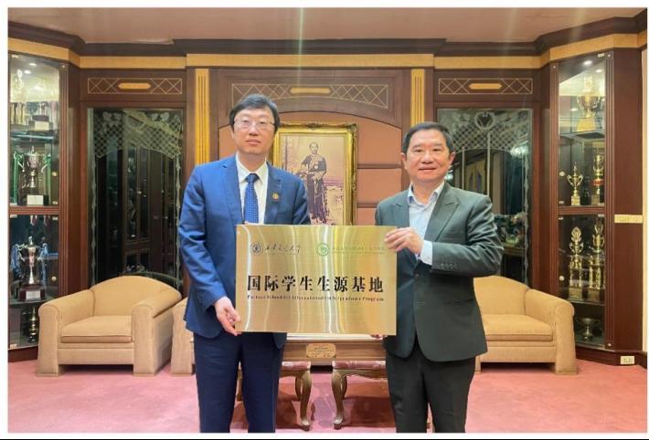 张立群校长向两所泰国学校授予“西安交通大学国际学生生源基地”铭牌