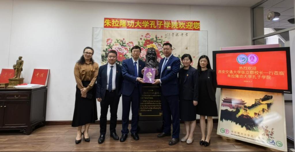 张立群还调研了朱拉隆功大学孔子学院国际化招生和办学情况。孔子学院中方院长韩圣龙介绍了学院的发展历程、主要工作和特色项目。张立群表示,希望通过朱拉隆功大学孔子学院促进西安交大和朱拉隆功大学的深入合作与交流,不断加强两校人员之间往来,深化学科、科研等多领域、多维度合作,吸引更多泰国优秀学子赴西安交大留学。
