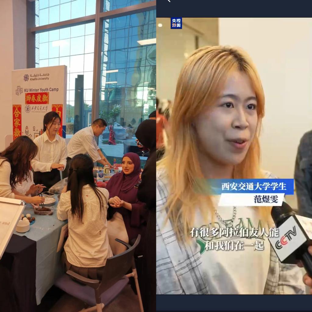 当地时间1月23日(农历小年),为迎接第一个“世界非遗版”中国传统节日——春节,阿联酋哈利法大学首次举办迎新春庆祝活动,当天的活动吸引了500余名师生参与。中央广播电视总台蛇年春晚宣传片也在现场循环播放,为活动增添了浓郁的新春气息。西安交大学生积极参加了此项活动,并精心布置了西安交大展台,与阿联酋青年一起包饺子,赢得了广泛赞誉。