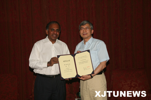 郑南宁校长向卡内基梅隆大学校长subra suresh颁发名誉教授聘书