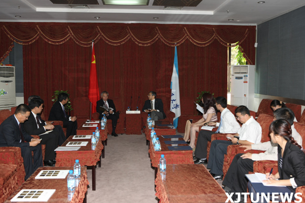 我校国际合作与交流处处长梁莉、软件学院副院长金莉、电信学院教授薛建儒、校长秘书金春阳、电信学院博士王飞等参加会见。