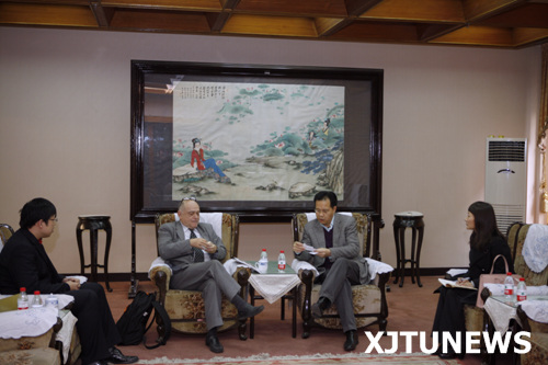 10月30日下午,法国巴黎南十一大学代表团访问西安交大。西安交通大学副校长卢天健、国际合作交流处处长梁莉、电信学院电子物理与器件教育部重点实验室吴胜利教授在科学馆会议室会见来宾。来访的嘉宾有:法国巴黎南十一大学副校长Jean-Pierre Faugere,法国南十一大学兼职教授、法国CNRS终身研究员ZHAO Weisheng。