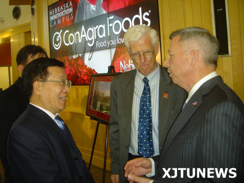 活动期间,宋晓平副校长还分别会见了内布拉斯加州州长戴夫·海纳曼先生,州务卿John Gale先生,州长先生及州务卿对西安交大与内布拉斯加大学的交流与合作表示了充分肯定,认为双方的合作前景广大,意义深远,州政府将积极予以支持。宋晓平副校长还会见了内布拉斯加大学Ronnie Green副校长,副教务长Tom Farrell,林肯分校农学院Yoder助理副校长,工学院院长Timothy Wei教授,建筑学院Mark Hoistad副院长等,双方就大学的办学机制改革、创新发展、跨学科办学机制进行深入的交流和探讨,一致同意进一步推动和扩大双方的合作科研和交流。