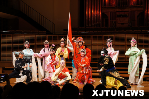 12月2日晚,西方著名的音乐学府澳大利亚悉尼大学音乐学院音乐厅高朋满座,热闹非凡。陕西省戏曲研究院、西安交通大学戏剧学院小梅花秦腔团在此成功进行了演出,让澳大利亚民众近距离感受了中华优秀传统文化的魅力。这是为庆祝中澳建交40周年,应澳大利亚“2012中国艺术节”组委会的邀请,陕西省戏曲研究院、西安交通大学戏剧学院首次赴澳大利亚开展文化交流演出。陕西秦腔精彩的折子戏片段“三月桃花”、“打焦赞”、“三岔口”等节目赢得了现场观众阵阵热烈的掌声。中国驻悉尼总领馆参赞级文化领事翟德玉、悉尼大学音乐学院教授级院长安妮李德(Anne Reid)、澳大利亚音乐与戏剧界的专家学者与现场观众600余人观看演出。演出团访澳期间还专程拜会了中国驻澳大利亚大使馆公使衔文化参赞柯亚沙,陕西特色的文化艺术受到了柯参赞的高度赞扬。
