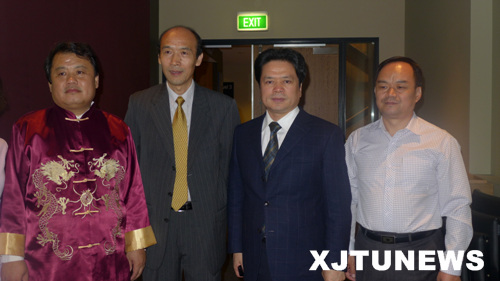 悉尼参赞级领事翟德玉(左二)、王文清(右一)参赞、2012中国艺术节组委会主席柴长宁(左一)和陈彦院长合影