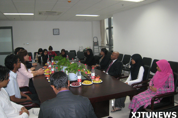 宋玉霞院长代表学校对驻华大使拉蒂夫先生的光临表示热烈欢迎,并从地理位置、历史文化、学科发展、留学生现状、著名校友以及毕业生去向等方面介绍了我校的留学生工作。她说:“马尔代夫学生一直是我校优秀留学生中的代表,他们勤奋好学,多才多艺,大部分赢得了学校设立的奖学金,其中两名还获得了教育部留学基金委优秀自费留学生奖学金,给留学生们作出了表率。学校非常欢迎这样的学生前来就读,希望更多来自马尔代夫的优秀留学生报考西安交大。”