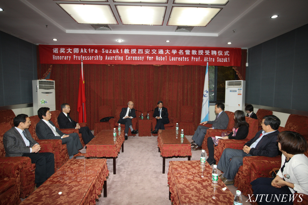 9月18日上午,2010年诺贝尔化学奖得主、日本北海道大学荣誉教授铃木章教授来访西安交大并受聘名誉教授。