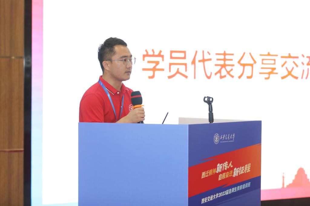 电气学院硕士毕业生、江苏省选调生王建臣代表全体学员发言,表示交大选调生定会坚定信念、涵养情怀,勤奋学习、追求卓越,将自身所学与地方所需结合起来,为国家社会主义现代化建设贡献交大力量。