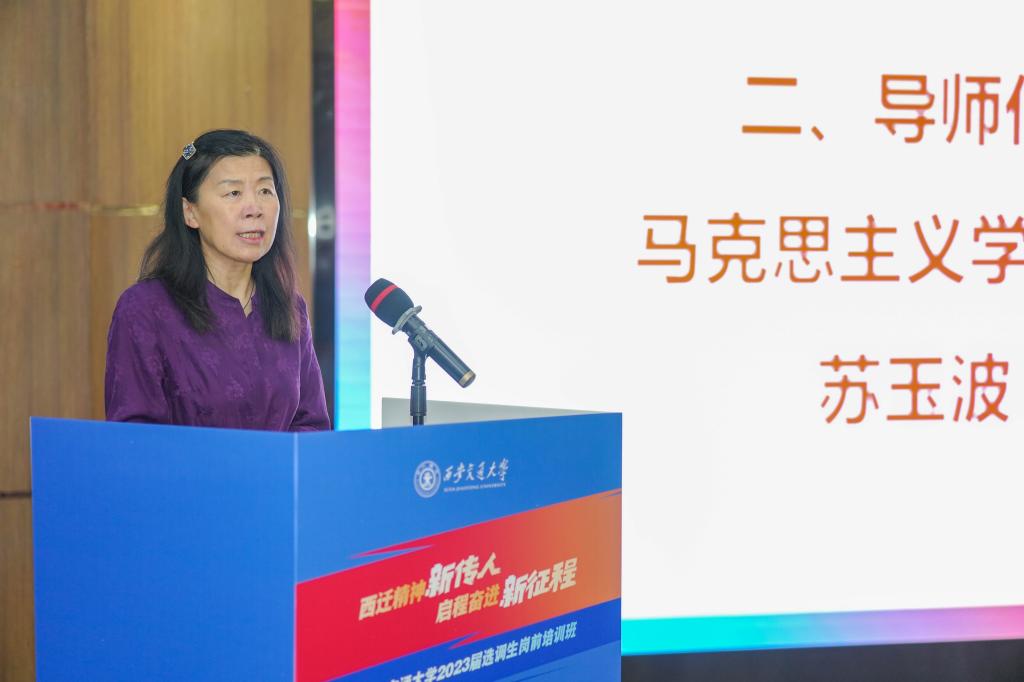 马克思主义主义党委书记、陕西省选调生刘婷婷的导师苏玉波教授代表毕业生导师发言,她希望选调生们增强八项本领,提高七种能力,排除万难,奋勇搏击,让青春之花绽放在祖国最需要的地方。
