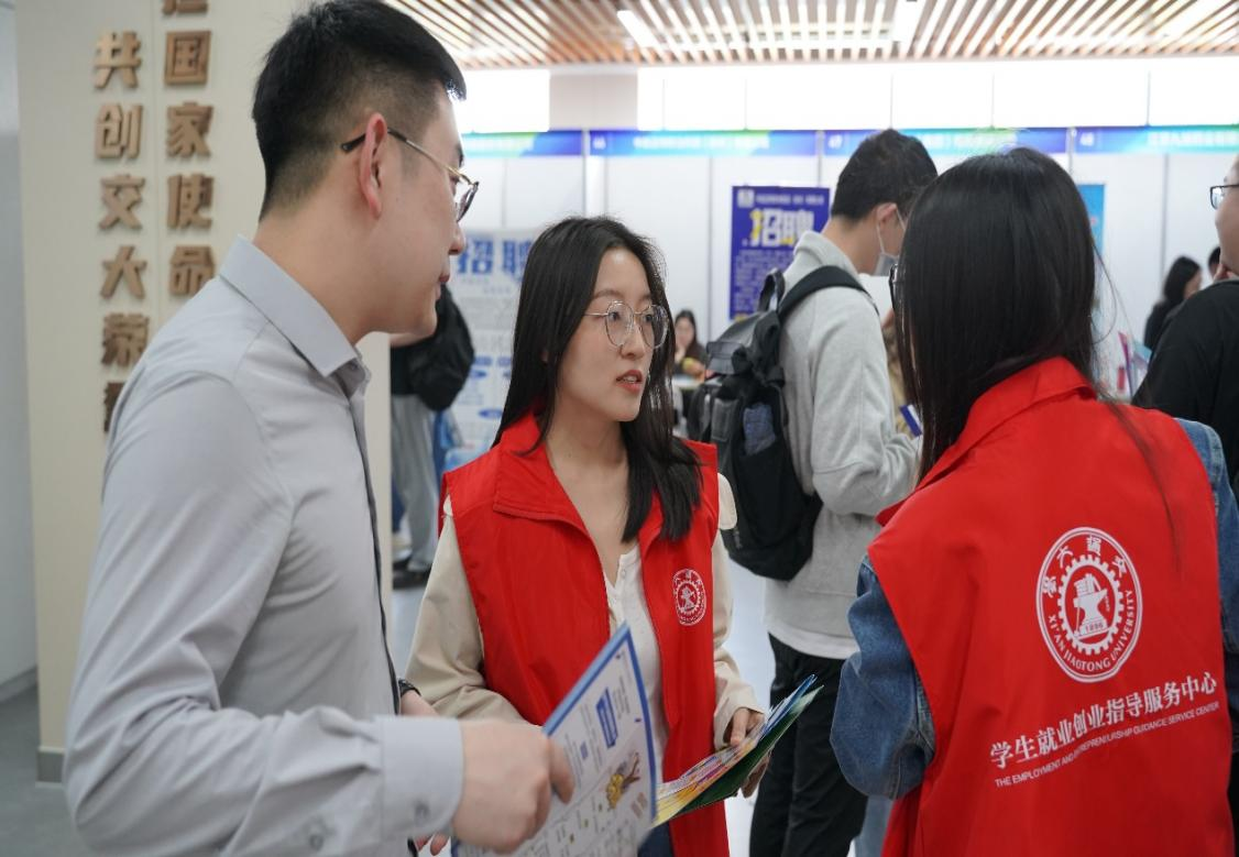 中国船舶集团对西安交大的“通识教育+宽口径专业教育”和本-硕-博贯通等人才培养模式非常认可,特意将学校作为今年秋招的首站。前来求职的学生在志愿者的指引下有序进场,与企业代表展开交流。应聘学生表示,军工企业与交大一样都胸怀“国之大者”,希望能加入其中,为兴军强国事业贡献力量。