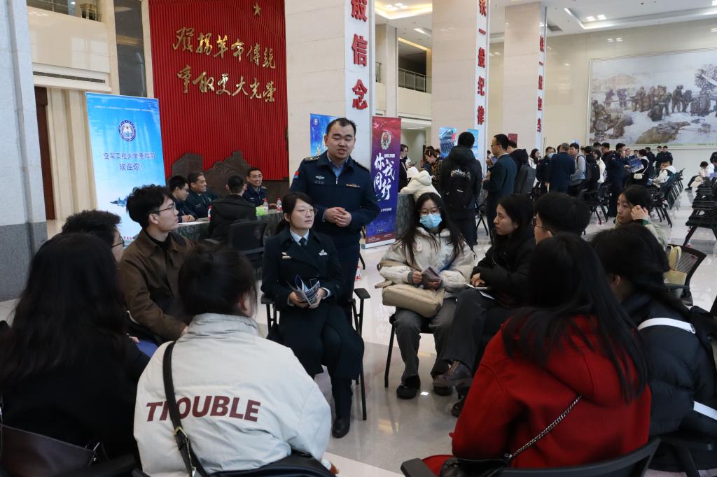 最后,交大各院系学生积极参与了空军工程大学直招军官和部队文职招聘会,与工作人员面对面沟通招聘事宜,探索求职方向。