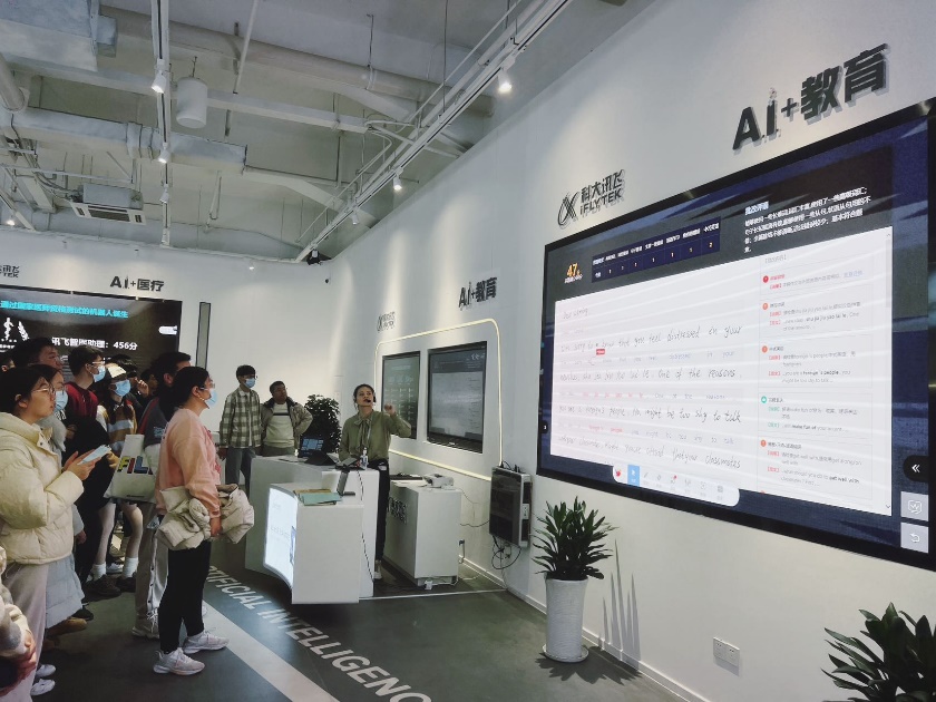 科大讯飞作为全球领先的人工智能企业,一直以来致力于推动人工智能技术的发展和应用。在参观过程中,同学们与科大讯飞的工作人员进行了深入交流,了解了公司的业务范围、企业文化以及未来的发展方向。在讲解员的带领下,同学们参观了科大讯飞的一楼展示厅和二楼的AI会议室,亲身体验了人工智能技术在语音识别、自然语言处理、机器翻译等领域的应用。