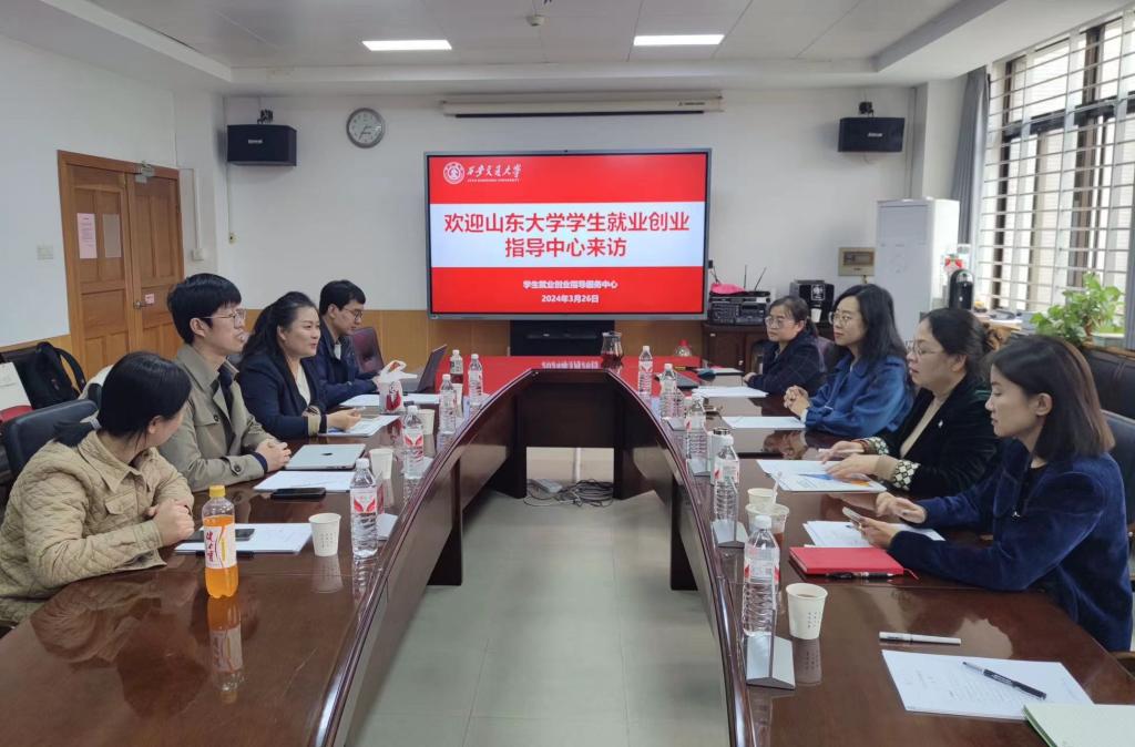 3月26日下午,山东大学学生就业创业指导中心主任郭春生带队来到西安交大,调研学校学生就业创业工作相关经验做法。就创中心主任郑旭红、副主任苗洁及相关科室负责同志参加座谈交流。