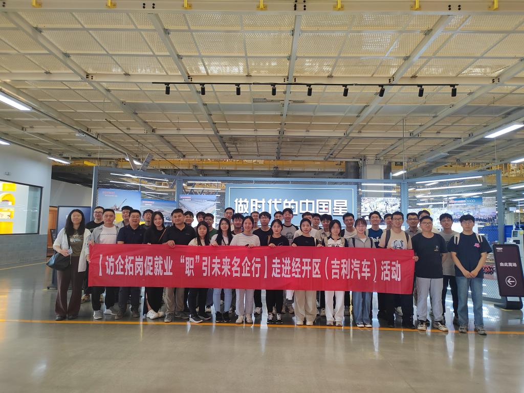6月14日,“访企拓岗促就业,职引未来名企行”实践活动走进吉利汽车西安制造基地,彭康书院朱宏伟老师、就创中心郭瑞老师和35名交大学子在吉利西安公司校园招聘经理庞超等人带领下参观了吉利智能制造基地。