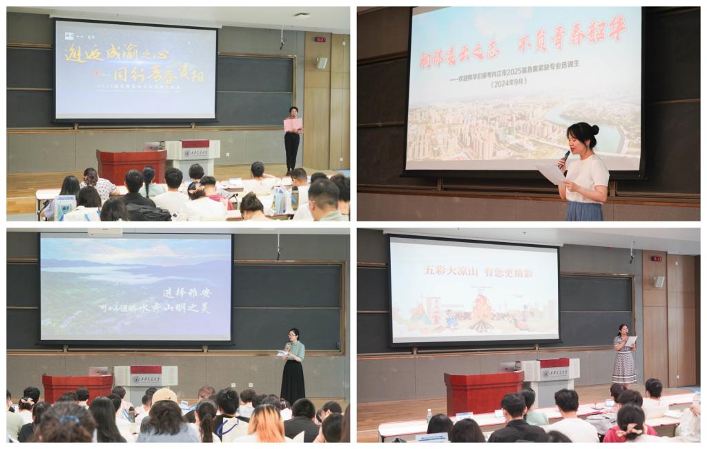随后,资阳市、内江市、雅安市、凉山州分别就各自市、州基本情况及选调生招录情况分别进行了介绍。各市州不拘一格吸纳优秀青年才俊,为同学们提供了广阔的平台、丰富的选择。