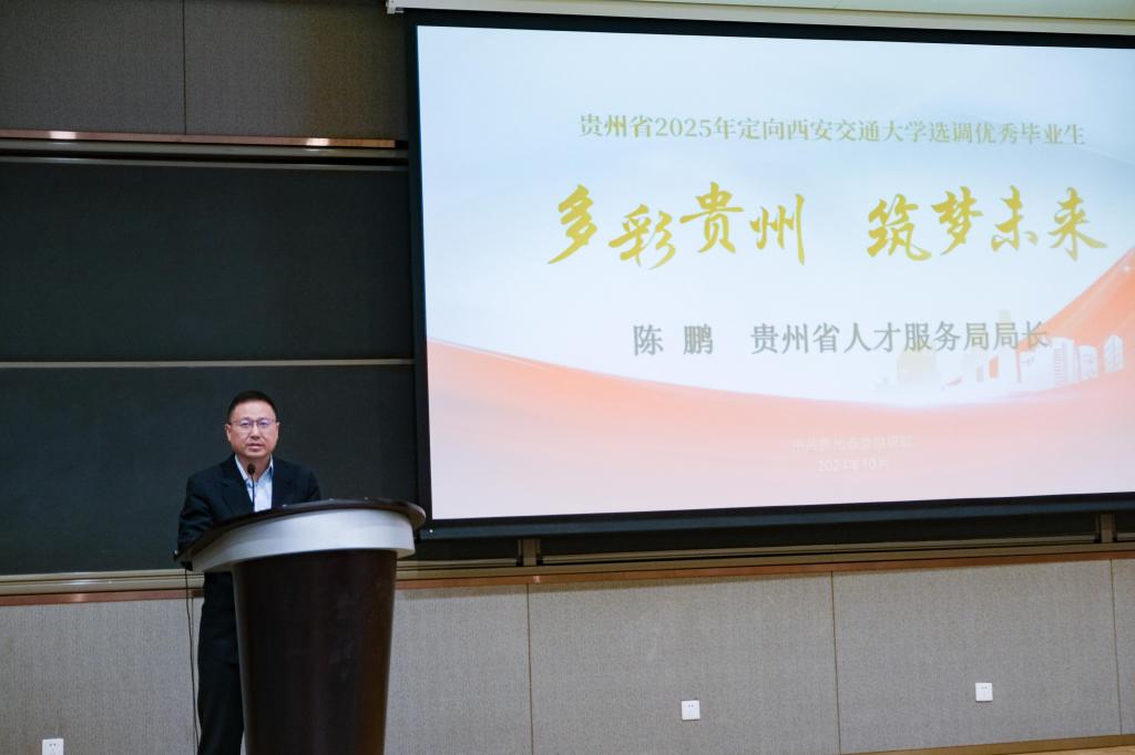10月15日下午,贵州省定向西安交通大学选调优秀毕业生宣讲会在中国西部科技创新港举办,会议由贵阳市委组织部副部长、市公务员局局长陈飒主持。