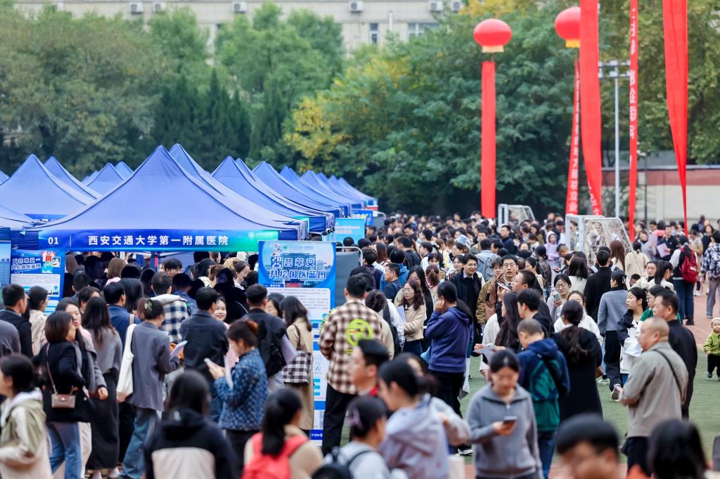 金秋十月,秋风送爽。10月26日,由陕西省教育厅和陕西省人社厅指导,西安交通大学主办,空军军医大学、西北大学、陕西中医药大学、延安大学及西安医学院协办的陕西省2024年医药卫生类毕业生秋季双选会在西安交大举行。