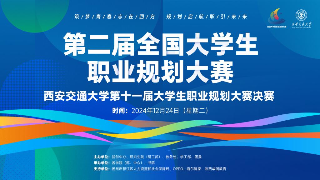 12月24日晚,西安交通大学第十一届大学生职业规划大赛暨第二届全国大学生职业规划大赛校内选拔赛决赛举行。本届大赛由就创中心、研工部、学工部、校团委主办,各学院、书院承办。