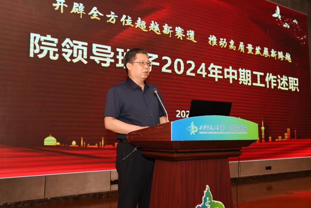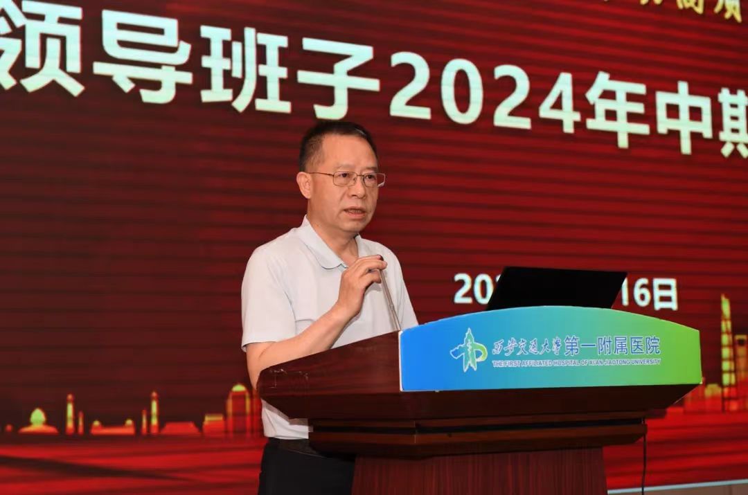 7月16日下午,一附院召开2024年度院领导班子中期工作述职报告会。西安交通大学党委常委、副校长、医学部主任、一附院院长吕毅出席会议。医院领导班子成员、党委委员、院长助理、全体职能管理部门干部、部分临床科室主任代表参加会议。会议由院党委书记马辛格主持。