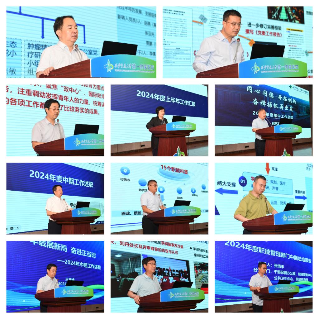 会上,副院长马现仓,党委副书记冯广林,党委副书记、纪委书记韩菊(宣传部部长王睿代述)、总会计师张琳、副院长韩苏夏、李小鹏、韩建峰、李磊、王亚峰、佘军军(榆林医院副院长和水祥代述)、张谞丰分别结合分管、共管工作依次展开述职。他们紧密围绕2024年上半年核心任务的完成状况、现存问题、改进举措以及下半年重点工作等关键要点,以明晰的条理、突出的重点,对上半年的履职历程进行了梳理。针对出现的问题,他们认真进行复盘总结,并为下半年工作精心谋划出清晰的思路。