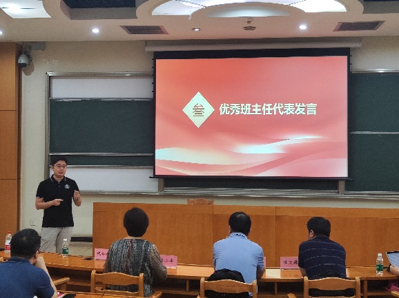 优秀班主任代表孙昊从班主任与学生的关系切入,认为要平衡好“朋友”和“教师”的双重身份,平衡好科研教学和学生管理的双重工作,回应好学生的问题和家长的关切,培养学生的家国情怀和长远眼光。