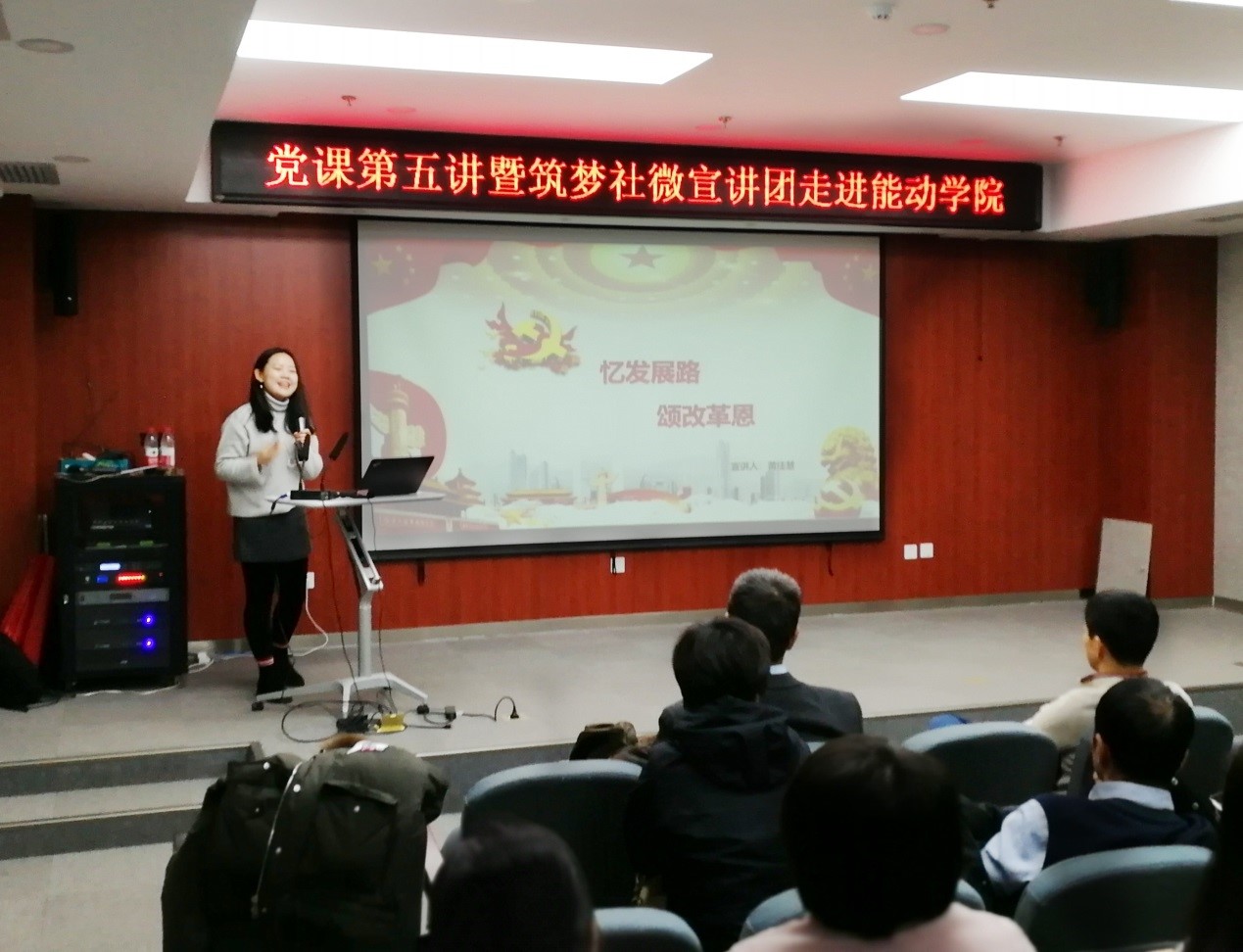 12月5日下午,能动学院在北二楼举办了系列党课第五讲。西安交通大学筑梦社宣讲团成员以“改革开放40年来祖国伟大的发展变化”为主题做宣讲,能动学院110余名教工党员和学生党员代表参加了本次党课学习。
