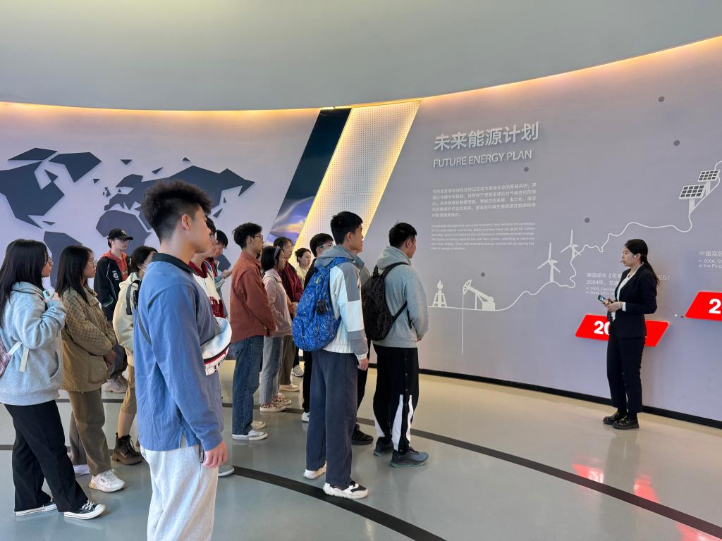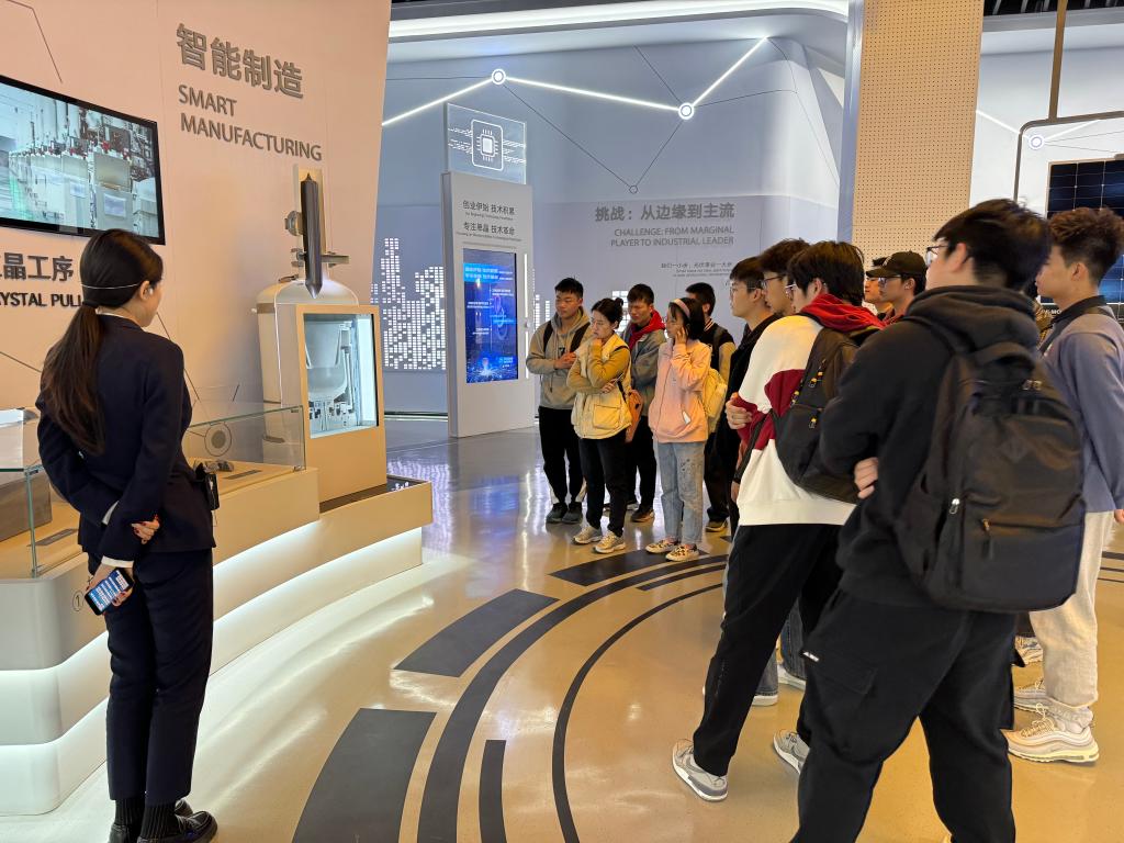 同学们在讲解员的带领下参观了隆基绿能智慧能源展览馆。讲解员详细介绍了隆基绿能的发展历程、业务版块以及未来布局,太阳能电池板从原料准备到成品封装的完整生产流程,通过球幕等先进设备展现了从古至今的气候变暖历程,同学们了解了隆基绿能在推动绿色能源技术方面所取得的突出成就。化学2201班的程哲熙说,这次参观活动不仅让她学到了丰富的知识,更让她对光伏行业有了更为直观和深刻的理解。