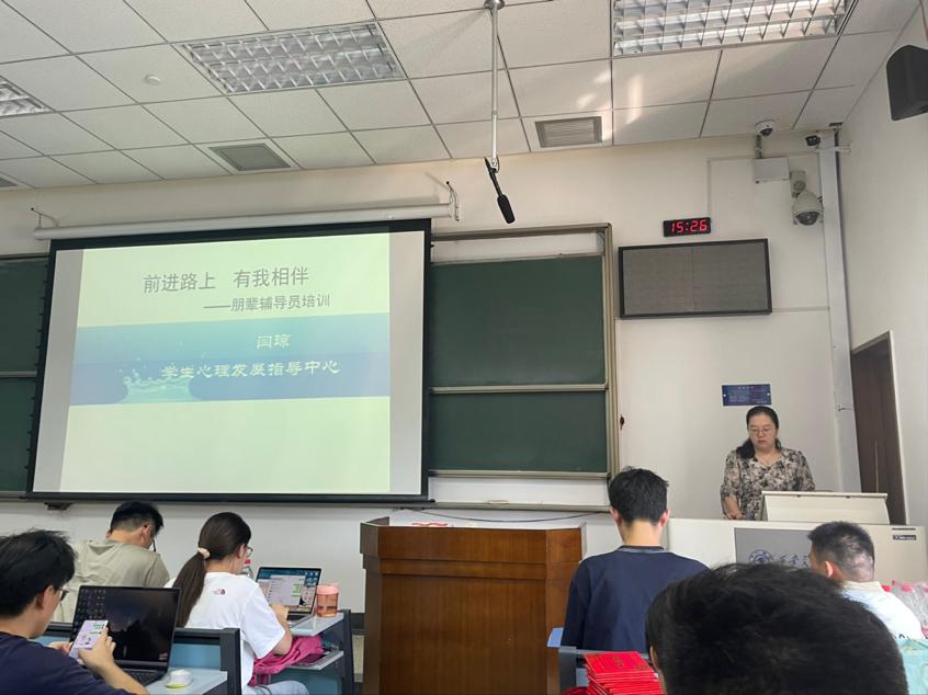 为提升朋辈辅导员的角色认知与专业能力,崇实书院9月18日举办2024级本科生秋季学期朋辈辅导员培训会。崇实书院院务副主任王美玲、学生心理发展指导中心讲师闫琼,辅导员景南、薛成、康旭博,全体朋辈辅导员及2024级新生代表参加。培训会由崇实学辅朋辈互助部学生邢旺主持。