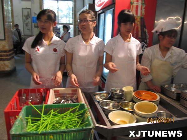 4月18号,我校500名世园会志愿者走进食堂开展模拟服务周活动。