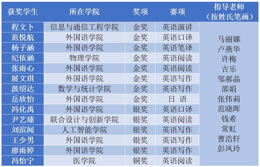 今后,外国语学院将继续优化“以赛促学、以赛促教、以赛促发展”的外语实践模式,充分调动学生参赛的积极性,通过外语学科竞赛培养学生的语言应用能力及创新能力,让竞赛实践与外语课堂教学形成合力,以更好服务学校的人才培养工作。