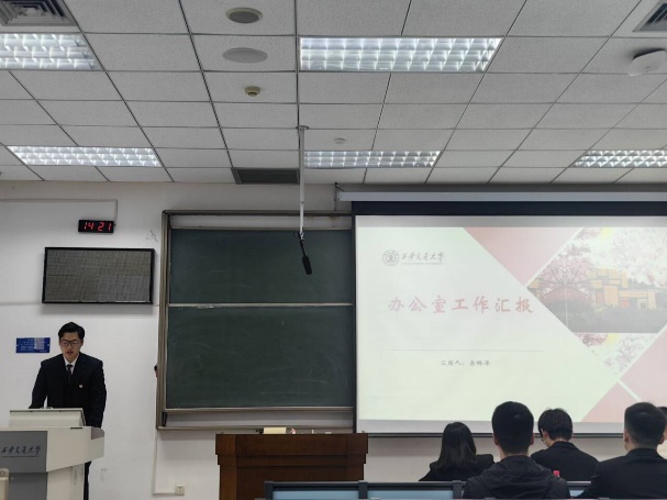本次大会在全体成员共唱《中国共产主义青年团团歌》的歌声中拉开帷幕。南洋书院团委办公室部员吴梓昭宣读《共青团西安交通大学南洋书院委员会部员考核办法》,向与会成员宣读办法内容。