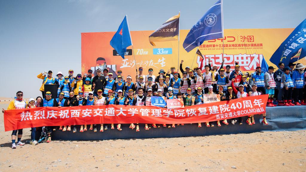5月2日-4日,第十三届亚太地区商学院沙漠挑战赛在腾格里沙漠举行。来自全国100余所院校的4000多名商学院精英决战沙场。西安交大沙13COLMO战队勇创参赛以来最好成绩,荣获团体第七名,并且荣获赛事最高荣誉“金沙鸥奖”、女子组C队亚军等奖项。